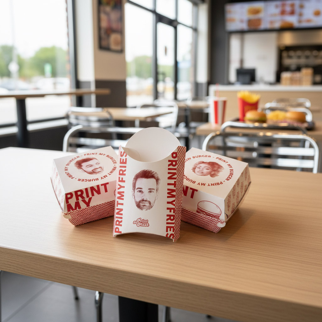 Ajoutez une touche d’originalité et d’humour à vos repas avec notre kit boîte burger & frites personnalisé. Importez votre photo et retrouvez votre visage préféré directement sur votre packaging.